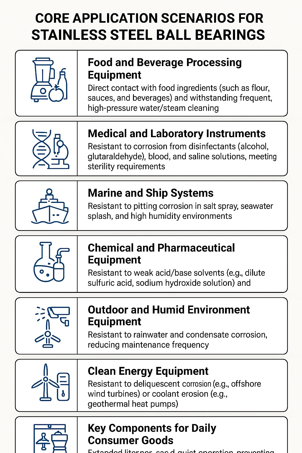 Alapvető alkalmazás forgatókönyvei Rozsdamentes acél golyóscsapágyak